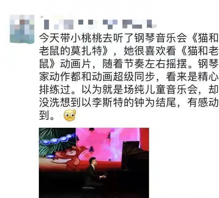 我是一個音樂盲,對鋼琴基礎今天同樣接受了一次高等教育,我們一行座在貴賓席上心情激動,打開了筆記寫呀記呀,環顧周圍年輕的琴爸琴媽帶著琴童用心聽講呀,到精彩處手舞足道,手指忙碌“空手彈”著練著,可見我們常熟大有鋼琴人才,今天大劇院為這些本地鋼琴達人准備的是一場盛宴,過癮!我從心地裏為周老師點贊,為在座的鋼琴達人點贊,周老師把一首首世界名曲通過他的雙手彈奏出來,配上背景圖案更使孩子們百聽不厭,引來一次又一次掌聲,二個小時很快結束,大家不肯走,一次又一次謝幕鼓掌,周老師用心加演,最後在主持人的提議下來,一個三人名額互動,琴童們紛紛舉手提問周老師:幾歲學琴?每天練多少時間?你如何把握指法?等等。周老師一一作答:6歲練琴,練習時間與時俱進,45分鐘、一小時、二小時,有空就練,學琴很枯燥沒有捷徑可走,只有依靠勤學苦練,練習多了指尖的音符成了記憶。最後在《土耳其進行曲》和孩子們節奏拍手中落下帷幕。