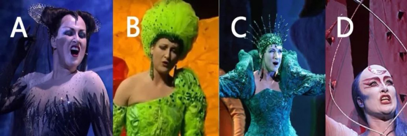 1.請從以下圖片中選出所有達姆嬈飾演的夜後。(漏選和錯選均不得分)