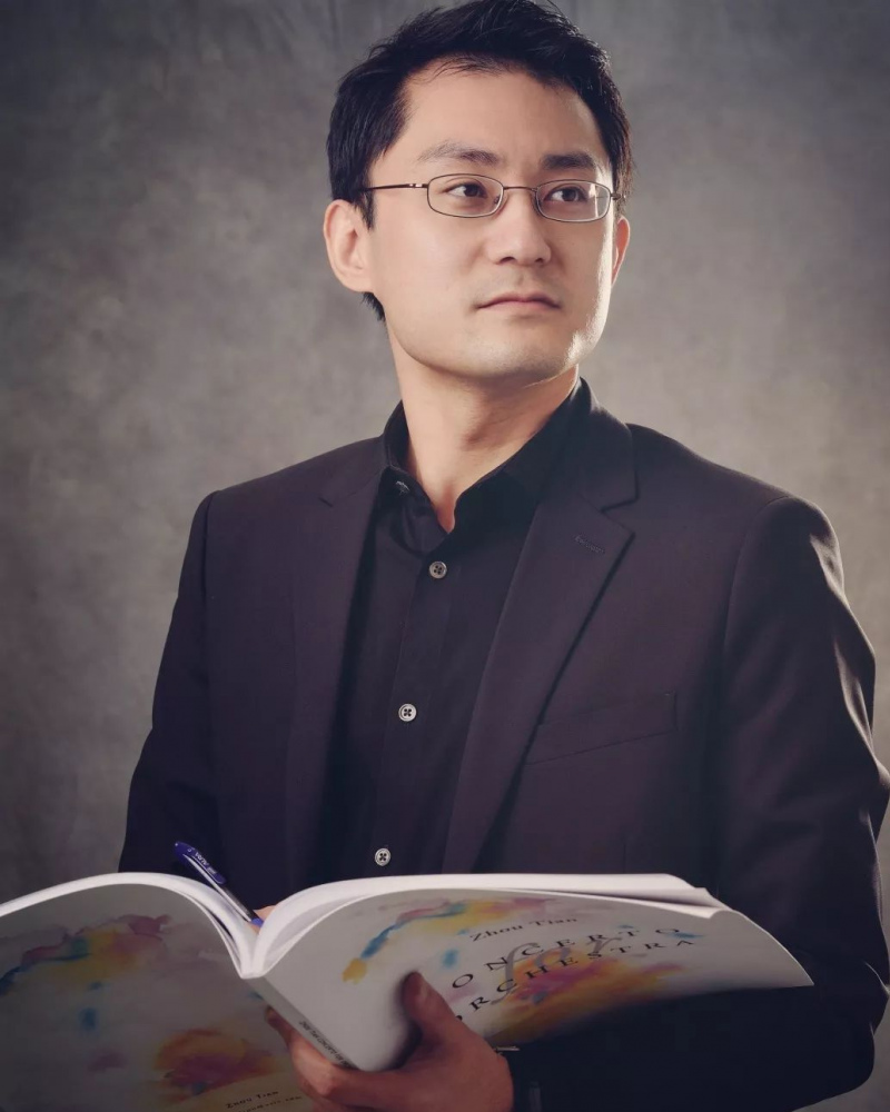 華裔作曲家周天現任美國密歇根州立大學音樂學院作曲系副教授。他1981年生於杭州,畢業於上海音樂學院附中、柯蒂斯音樂學院(學士)、茱莉亞音樂學院(碩士)、南加州大學(博士)。2018年1月,周天憑借《樂隊協奏曲》榮獲第60屆格萊美獎“最佳當代古典音樂作曲獎”提名獎,成為獲此殊榮的第一位華人。2019-20樂季受餘隆總監邀請任上海交響樂團駐團藝術家。作為餘隆力推的青年作曲家,2018年,他的大提琴協奏曲《水袖》由杭州愛樂樂團再杭州國際音樂節上奏響。今年9月,中國愛樂樂團新樂季開幕音樂會上《水袖》再次與觀眾見面。接下來,包括上海交響樂團、杭州愛樂樂團和廣州交響樂團在內的眾多國內樂團將上演《悅》《水袖》和《樂隊協奏曲》等多部周天創作的管弦樂作品。