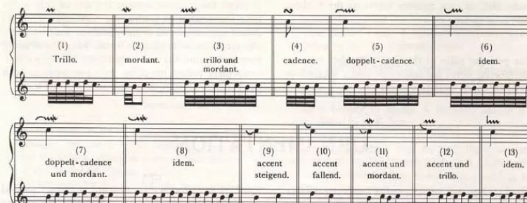 彈奏巴洛克時期裝飾音有很多具體的規則,比如: