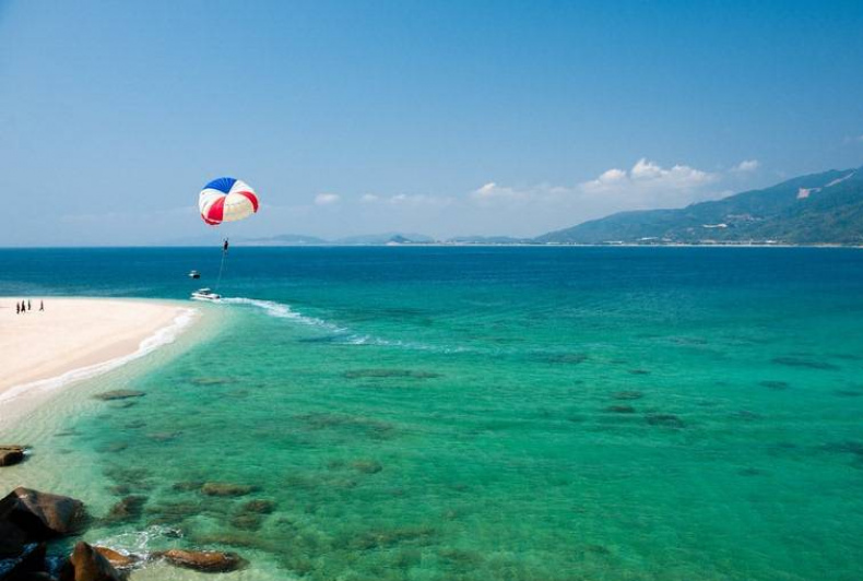 蓬島漁歌起,龜浮波浪,金輪緩緩升,照紅千萬心靈,牧笛隨風,牛開虎步,碧野蔚奇觀,一佛高枕無憂,勝境成詩,登峰極目盡攬人間海嶽;