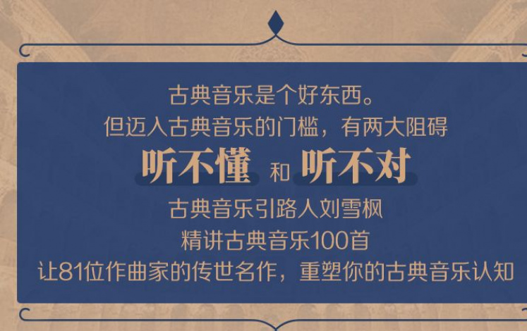 千呼萬喚,他的最新課程《劉雪楓:精講古典音樂100首》終於在喜馬拉雅正式上線。