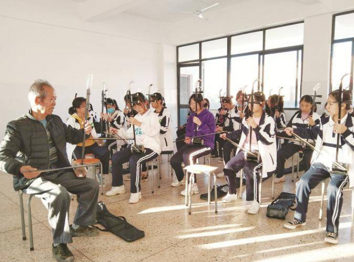 龍文三中:老藝人進校教授二胡