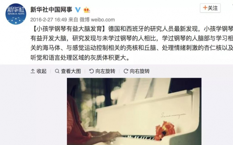 相關論文發表在美國新一期《神經影像學》雜志上。研究人員認為,上述研究成果有助於人們進一步認識早期音樂教育對人腦發育的重要性。