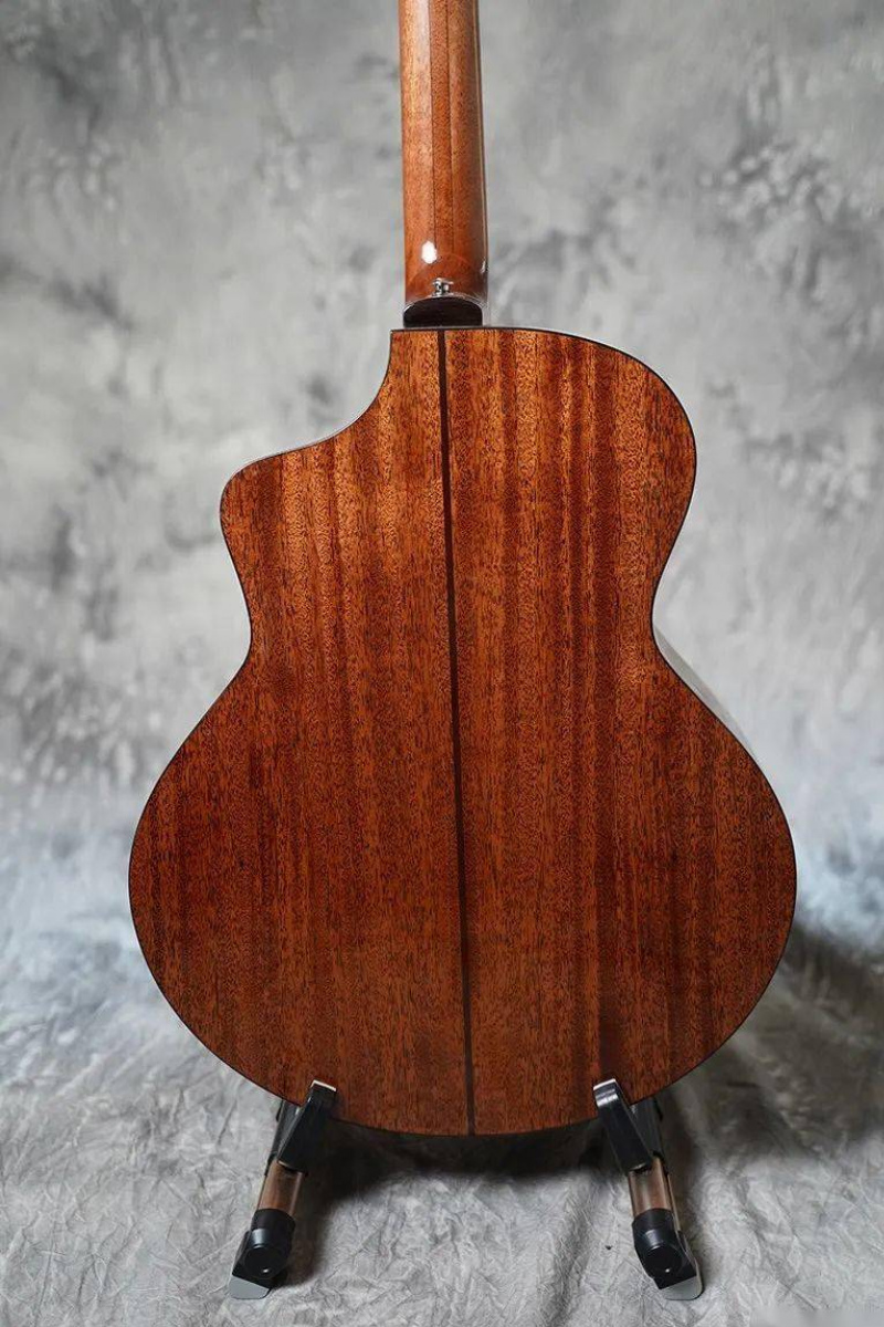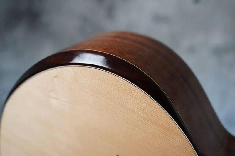 正安A1吉他系列的面板有兩種配置,分別是3A等級的雲杉面板、和桃花芯面板,雲杉反射速度快,聲音彈性更好,桃花芯中頻突出,聲音溫暖,總之大家各取所需,這個價位,買你覺得好看的就行。背側采用的都是桃花芯木單板,沒有玫瑰木版本。桶形使用的是40寸A桶,整只琴握在懷裏非常輕巧,缺角的配置也適合高把位演奏。