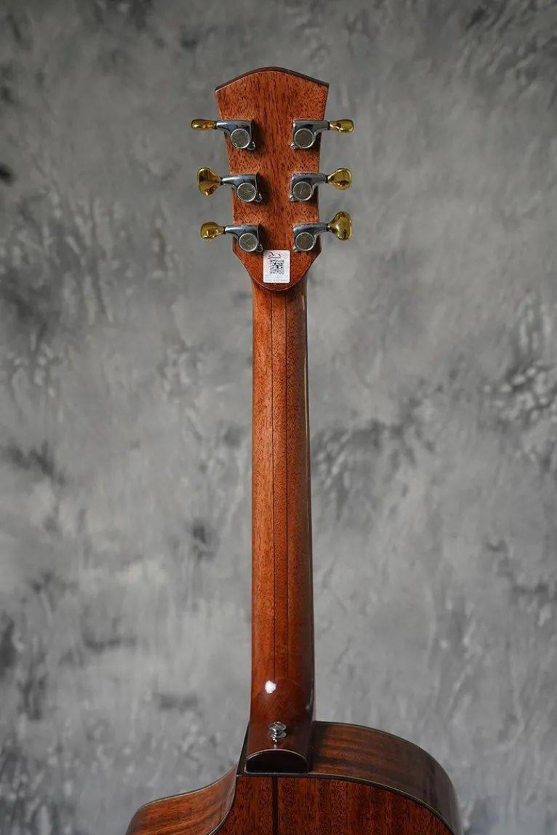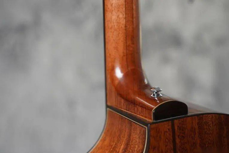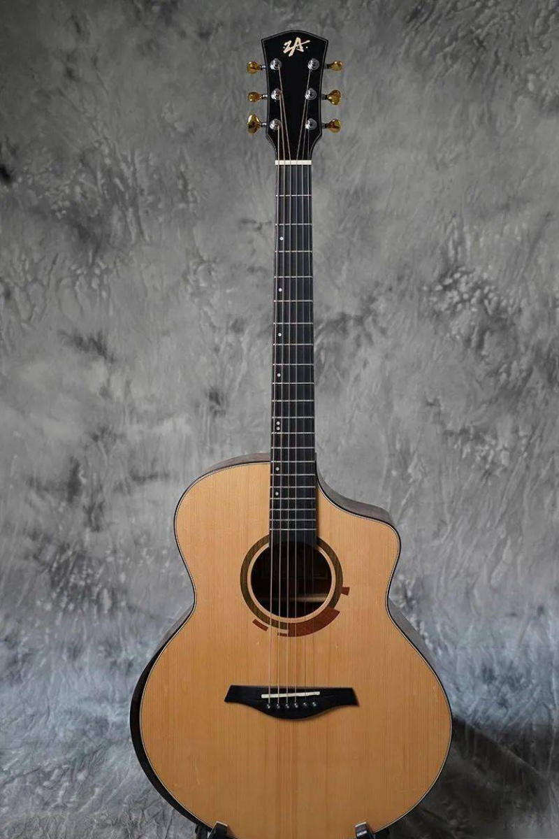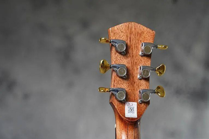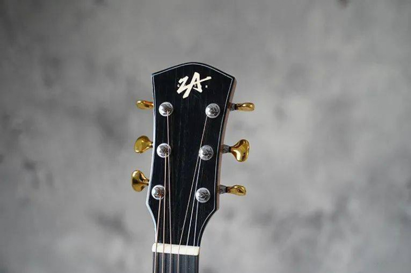琴頭的LOGO簡約大方,ZA是中國正安的縮寫,也代表著這個品牌是當地政府扶持的項目,弦鈕采用金色與銀色混搭的封閉式弦鈕,個人覺得還是統一色調比較好。琴頸的材質是桃花芯木,並采用了5拼工藝,大大加強了琴頸的硬度。指板以及琴碼采用科技烏木,穩定性會比玫瑰木好上不少。整琴都采用了亮光環保噴漆,但我還是希望琴頸處應采用啞光噴漆,之前的測評也說過類似的問題,琴頸處啞光漆的手感確實要好上不少。那除此之外,這把琴的其他做工細節,真的沒有可挑剔的,比如說整個系列都加入了靠手設計,讓整琴的握持感又提升了一個檔次,音孔圈的幾何設計,怎麼看都不像是一把初級全單。