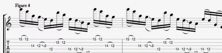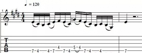 比如,你可以在兩個不同五聲音階之間,設計出個性的點弦(包括跨弦)技巧,讓它聽起來更炫一些: