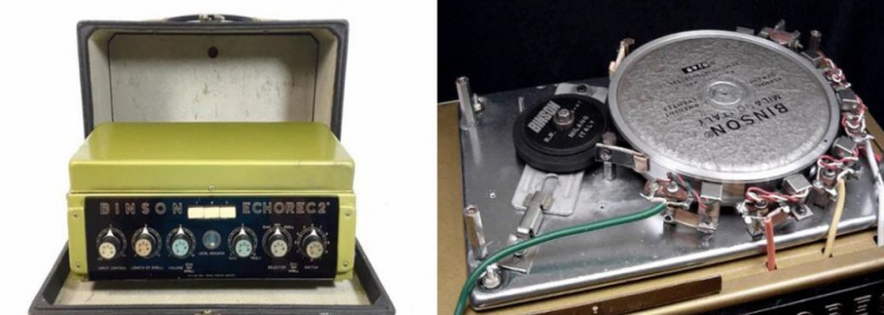 Volante在意大利語中指“飛行”,它的名字和外觀都暗示著這塊效果器最重要的靈感來源:即誕生於50年代米蘭的電子管磁鼓式回聲機——Binson Echorec。它除了是David Gilmour早年的常用設備,也被用於the Shadows、Jimmy Page等許多6、70年代樂手&樂隊的作品中。Echorec以磁性鋼絲作為錄音介質,鼓盤周圍有多個磁頭,其中一個磁頭用來錄音,另外四個用來重放,這套創新的“磁鼓儲存系統”也帶來了遠超當時其他磁帶延遲設備的穩定音效。