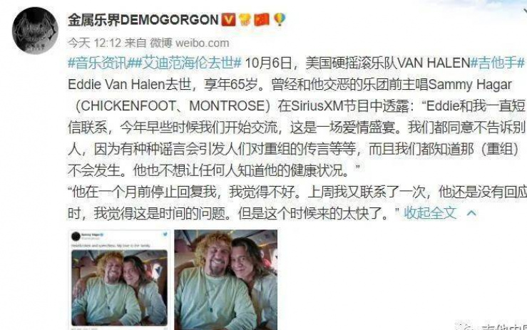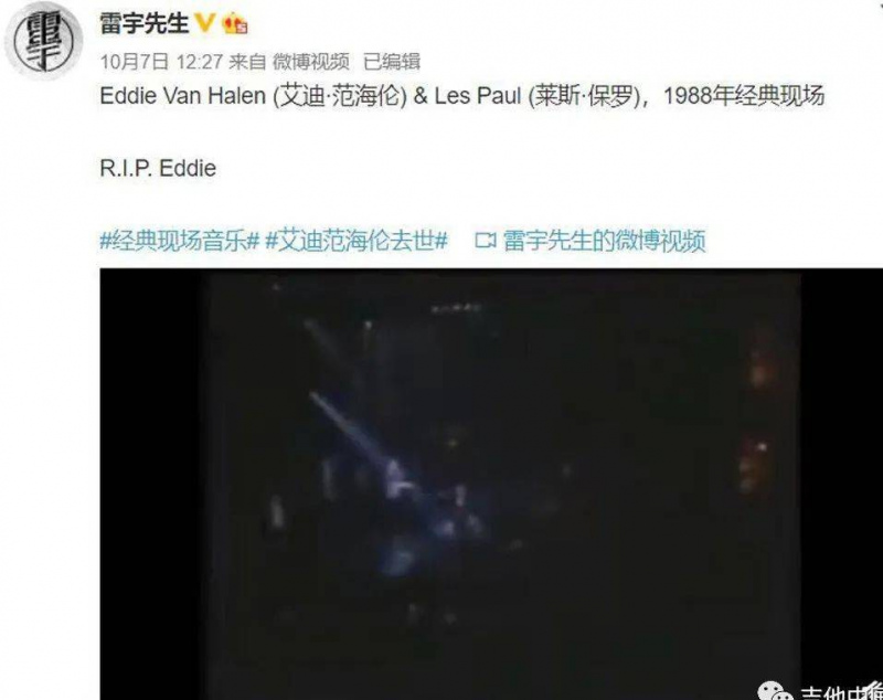 海內外音樂人紛紛發文追悼Eddie Van Halen ,致敬一代傳奇!