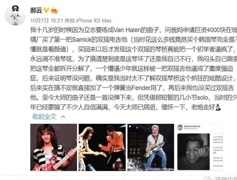 我們邀請了一些音樂人談談Eddie Van Halen ,也經過同意截取了部分朋友圈和微博文圖內容,共同懷念和致敬吉他英雄——Eddie Van Halen !