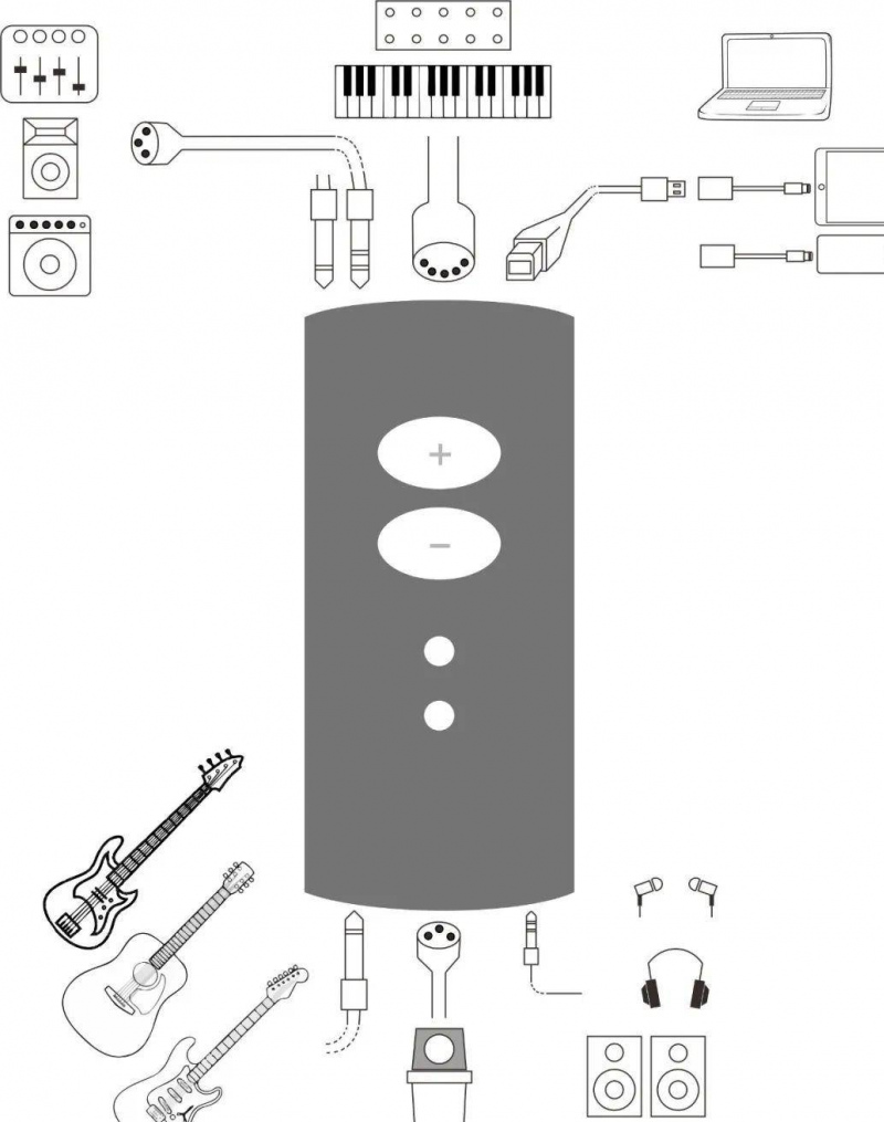 6.5mm接口,MIDI接口,USB接口,XLR接口,TS Mini上有多種接口可供選擇,接吉他,接麥克風,接電腦,接手機,接音箱等等。無論是老設備,還是新設備,都能用TS Mini串起來,聆聽音樂,即興演出,節奏感十足的爵士樂、震撼靈魂的搖滾樂,穿透力強勁的海豚音,不管什麼聲音,TS Mini都能讓你樂享其中。