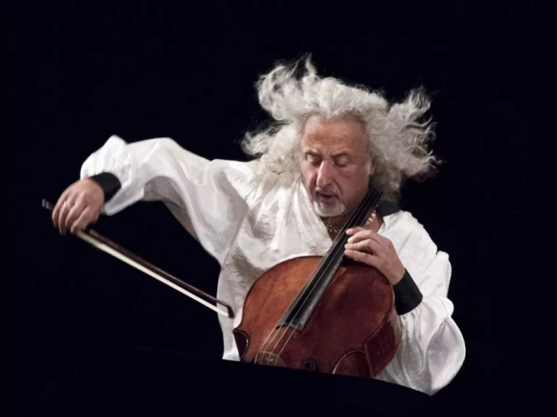 他在舞台上的風貌逍遙飄逸,像個得道老仙,演奏抒情樂段時,弓子也是遊離飄渺,像香爐青煙般悠悠的,有時和他的好哥們吉東·克萊默一樣有點神經兮兮的。