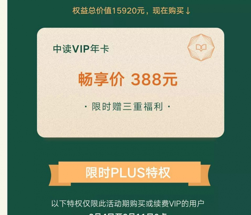 以上總價值15920元的中讀全年VIP大禮包