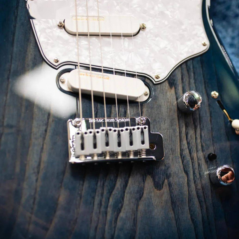 Passion RG-3 Indigo Burst的其中一大亮點就是它的沼澤梣木琴體擁有5個共振腔體。制琴師需要在5個特定的位置上分別進行中空共振腔體的制作,使琴體本身帶有非常明顯的聲學共振特征,震動信號非常飽滿,經拾音器和音箱的處理放大之後,音色圓潤豐滿,悠揚甜美,且空氣感十足,使整琴的音色在悅耳的同時也具有很好的動態。同時,由於中空的共振腔體,琴體的重量也變得更輕,對於習慣站姿演奏的吉他手來說,無疑會感到輕松有餘。