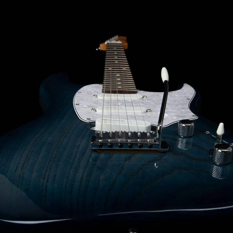 Passion RG-3 Indigo Burst琴體為高級沼澤梣木, 螺栓式連接的楓木琴頸。紋理美豔的沼澤梣木琴體正面和背面都采用靛藍漸變塗裝。 這款吉他提供楓木和玫瑰木兩種指板選擇,玫瑰木指板鑲嵌有白色圓點品記,而楓木指板鑲嵌著黑色圓點品記。