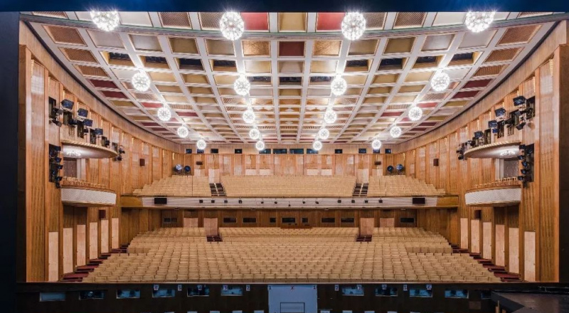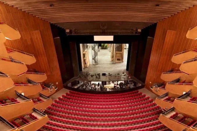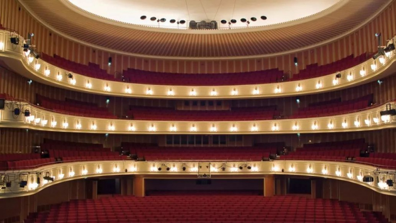 馬蹄形劇場是與鞋盒式劇場旗鼓相當的經典劇院構造模式,它的觀眾席是呈現出一種半包圍式的環形結構。樂池內的演奏家和舞台上的表演者融合度更高,形成了一個與觀眾相對應的整體。觀眾可以真切地感受到一種具有“放射感”的舞台沖擊力!