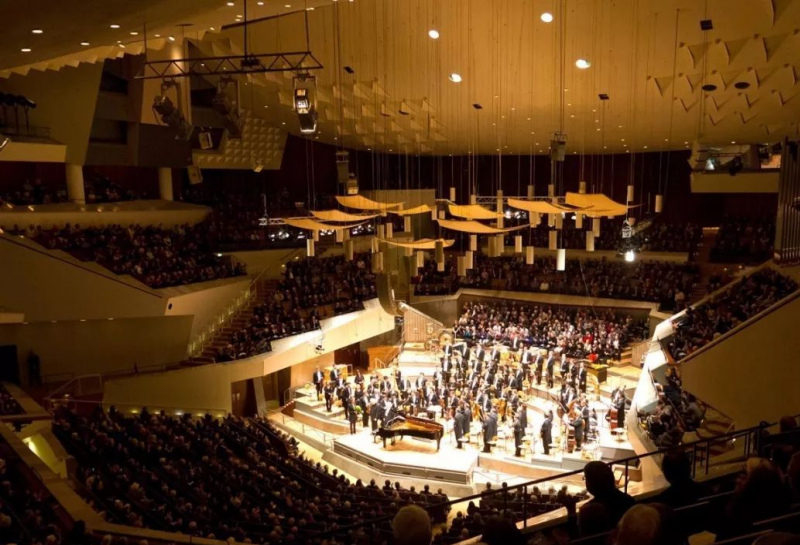 建於20世紀60年代的柏林愛樂大廳位於柏林市中央,是柏林愛樂樂團的大本營,也是全世界樂迷心中的聖地。前廳的空間高矮不一,其中還布置著許多柱子、階梯和進口。因為音樂廳前廳的空間形狀極其複雜,整個建築的內外形狀也及不規則,充滿後現代美感。