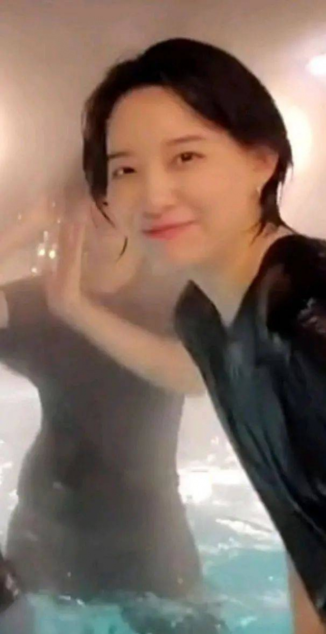 寧靜在溫泉中,直接來了一個出水芙蓉,靜靜子剛浮出水面的形象,毫無明星包袱。
