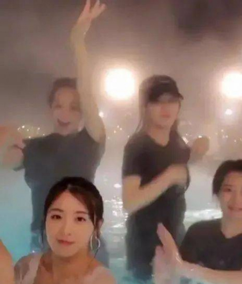 12月16日,寧靜在社交平台曬出自己和孟佳、李斯丹妮和張含韻一起在溫泉池中熱舞的視頻。