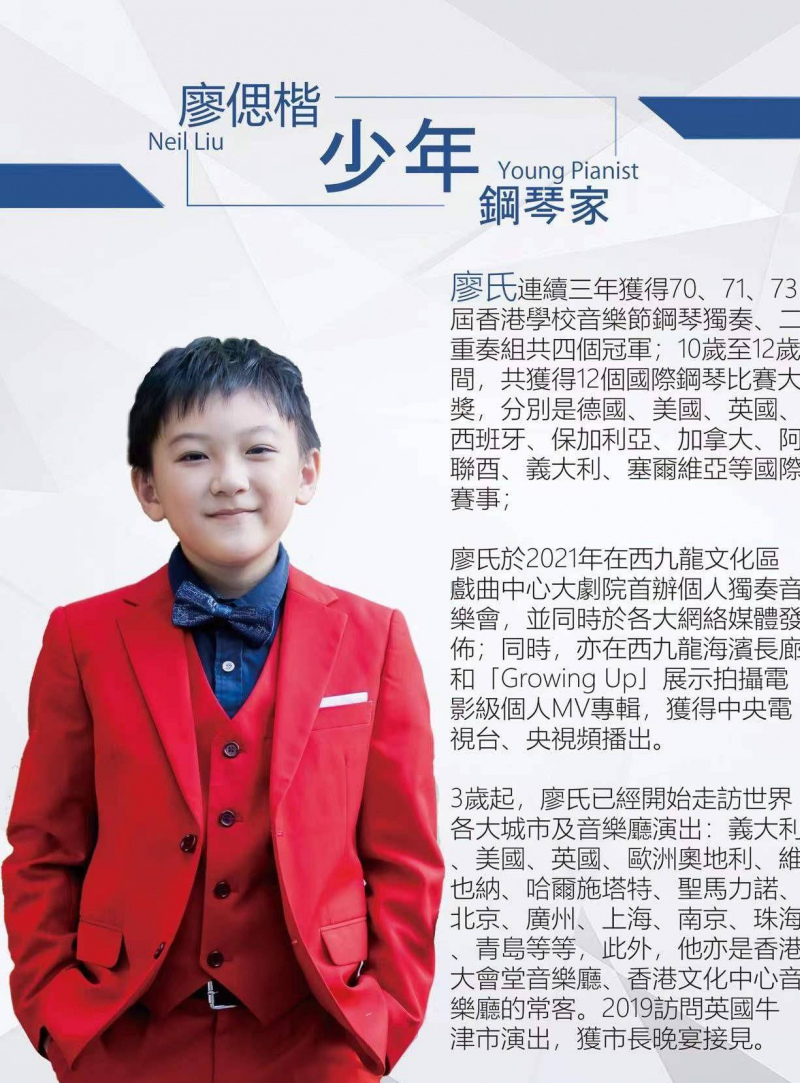 其中來自中國香港的7歲鋼琴少年周荃帶來了2首作品:《6 Pieces faciles op.10,No.1》(與中國香港青年鋼琴好手謝啟彥合作)、《捉迷藏》;中國吉林的8歲鋼琴少年謝研語帶來了2首作品:《二聲部創意曲 第14首 BWV785》、《Piano Sonata K.332 3rd Movement》;中國香港的13歲鋼琴少年廖偲楷帶來了3首作品:《Invention No,9 BWV 780》、《Piano Sonata in D, No.50, Hob.XVI/37 mvt.1》、《Waltz Op.64 No.1》;美國北德州大學的青年鋼琴家韋淳軒(在讀博士)帶來了2首作品:《Chaconne (1962)》、《Spanish Rhapsody, S254》;美國俄亥俄州奧柏林音樂學院的青年鋼琴家鄧宇博帶來了2首作品:《醜角的晨歌 》、《彩雲追月》;中國香港的鋼琴青年謝啟彥帶來了3首作品:《6 Pieces faciles op.10,No.1》(與中國香港鋼琴少年周荃合作)、《翻身道情》、《三首前奏曲第一首》;中國廣州星海音樂學院附中的高一學生王涵帶來了2首作品:《三首前奏曲第三首》、《練習曲Op.10 No.1》;德國柏林・漢斯-艾斯勒音樂學院的青年鋼琴家陳冠偉帶來了2首作品:《Piano Sonata No.2 Op.36 mov.1(1931 ver.) 》、《Prelude No.8 La fille aux cheveux de lin》;中國哈爾濱的青年小提琴家柳倩(博士)帶來了2首作品:《諧謔曲》、《我和我的祖國》……