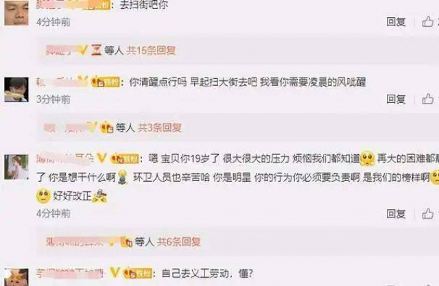 在評論區,用不著路人動手,粉絲們已經咆哮著喊賴冠霖去掃大街了,似乎之後這樣會,才能一解心中的怒氣。尤其是在熱評第一,表現出了更加強烈的情緒。直接評論“去掃街吧你”。