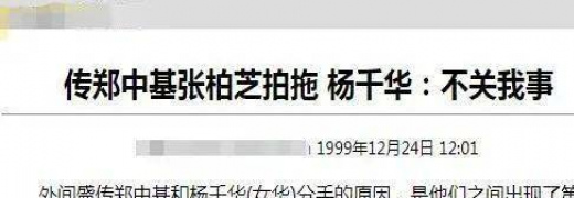 而在他們公布離婚之前的2009年,鄭中基和那時候還在香港發展的楊穎傳出了緋聞,他們被媒體爆出了貼身坐大腿的照片,兩人的緋聞滿天飛。