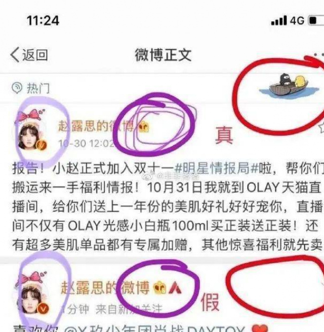 粉絲們也相繼找證據分析得出,圖是P的,小編我也再三求證,的確趙露思微博圖不太一樣。與下圖分析結論一樣。