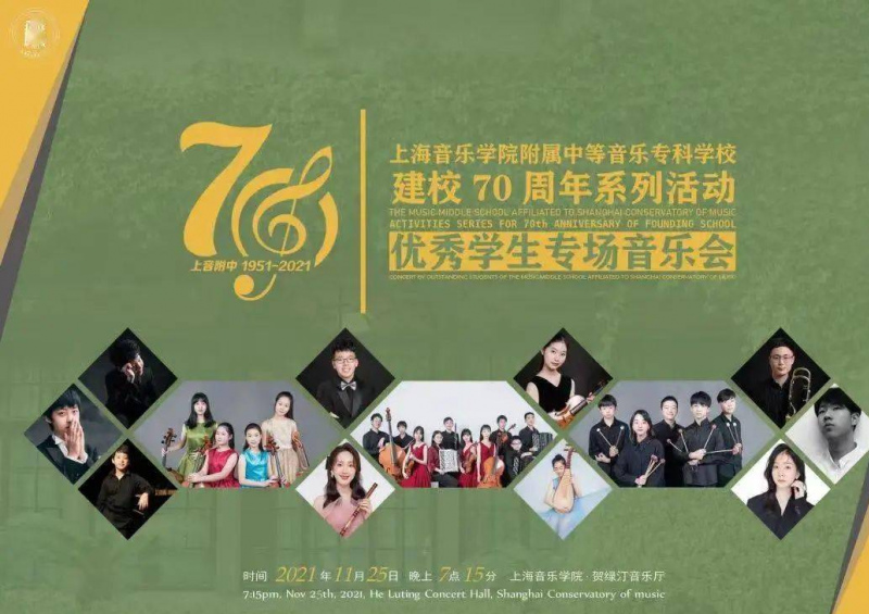 2021年11月27日,由人民音樂家賀綠汀先生創建的新中國第一所音樂學院附中——上海音樂學院附屬中等音樂專科學校,迎來了她的70華誕。從“學堂樂歌”的出現拉開了中國近現代音樂教育的序幕算起,至今不過一百多年的歷史,而上音附中建校的70年,正好是百年中國近現代音樂教育蓬勃發展的時期。