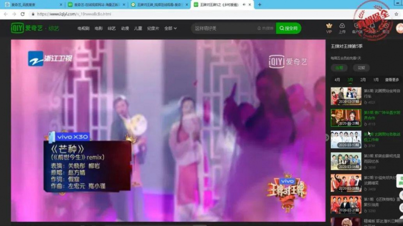 以及各大衛視綜藝節目使用歌曲的視頻截圖: