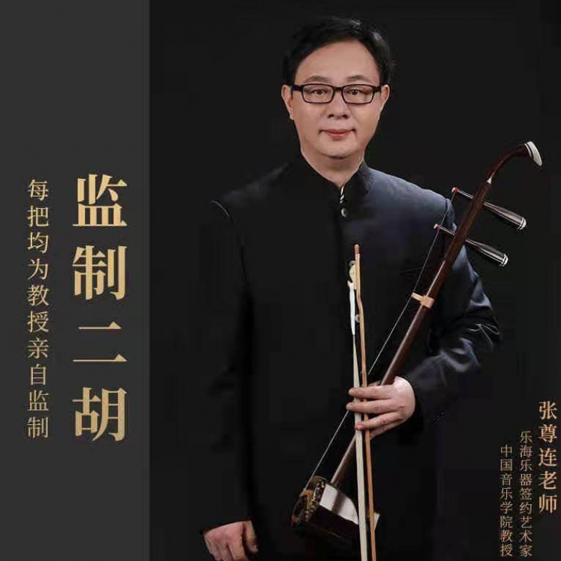 中國著名演奏家張尊連老師監制,每一把琴都經過嚴苛篩選,音色把控由中國音樂學院教授、樂海樂器簽約藝術家張尊連老師對每把二胡進行試奏,對音質音色嚴格把控,並題字以證。主材一級老撾紅酸枝木,紋理順直,質地松透,使二胡共振達到最優。