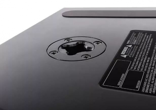 箱體中部還設置了四角棱柱形支架安裝孔,包裝盒內標配一個四角棱柱形接插件,可以與自行配置的標准音箱支架配合使用。
