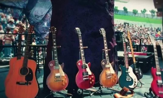 這張照片向我們展示了 Led Zeppelin 樂隊在70年代的演出後台,而我們看到的這些吉他則是每晚演出中 Jimmy Page 必須用的吉他。對於很多人來說可能有會些繁瑣,但對 Jimmy Page 來說卻是很有必要的。這樣做的好處就是可以保證樂隊演出的無縫銜接,完全無需擔心重新調弦或者斷弦的情況發生。