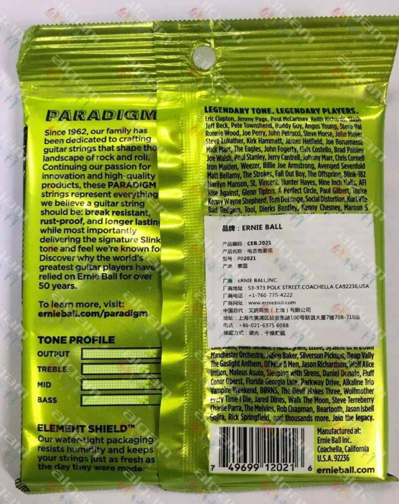 1、每款套弦外包裝背面,均帶有ALGAM CHINA的中文標識。