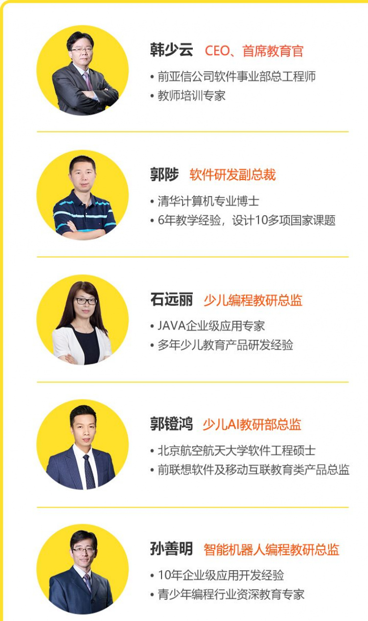 依托“專業+實戰+理論”的積累,CEO親自掛帥,聯合清華博士、JAVA企業級應用專家、STEAM創客教育專家等,聯手打造適合中國孩子的趣味編程教育。