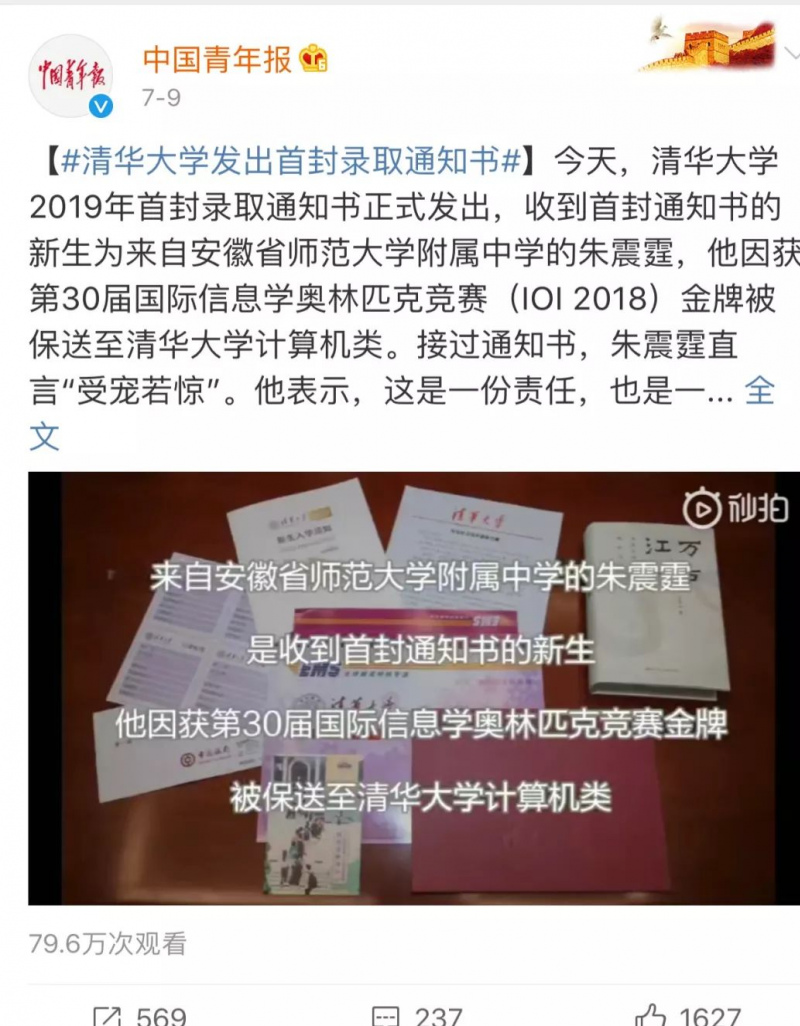 他因學編程獲得國際信息學奧賽金牌,不僅享受到第一波升學福利,還被中國青年報重量級官方媒體點名。網友:吊打研究生的通知書。