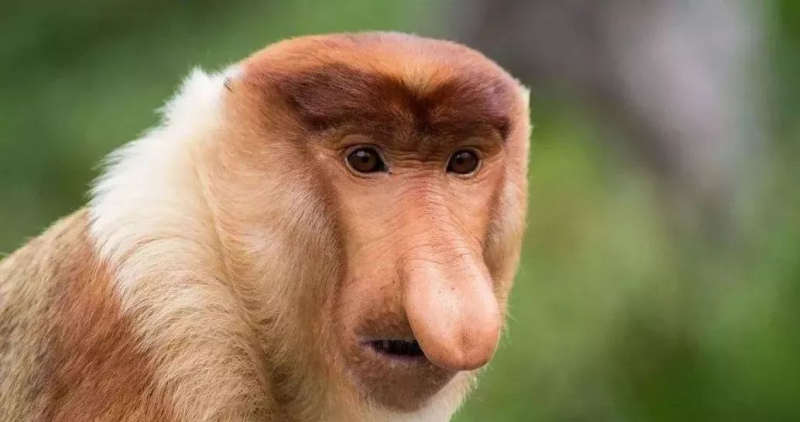 長鼻猴有著紅色大鼻子,吃東西的時候會將鼻子歪到一邊,樣子非常可愛滑稽。