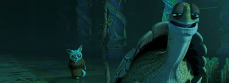 記不記得大龍是怎麼逃獄的?我們來回憶一下,影片一開始烏龜大師和師父就見了面,在一大圈兒蠟燭面前,(記住這個蠟燭!後面要考的!)烏龜大師說感覺大龍會殺回來,師父就變得非常緊張,馬上派侍從小善飛去關押大龍的監獄讓他們“加倍看守,加倍武裝,該加倍的都加倍”。然後阿善好巧不巧在監獄的時候被監獄長拍了一下,掉了幾根羽毛,其中有一根羽毛好巧不巧飄到了大龍背後鎖銬的插口,充當了鑰匙,隨後在大龍的一頓操作下,成功脫身。