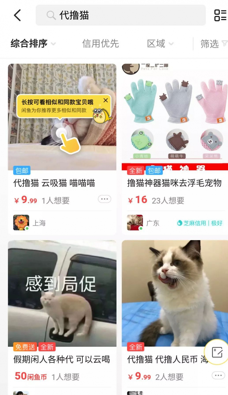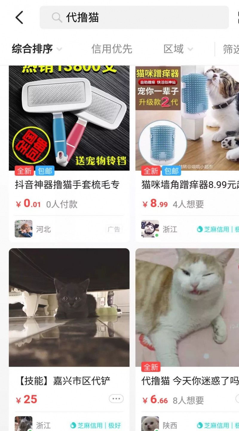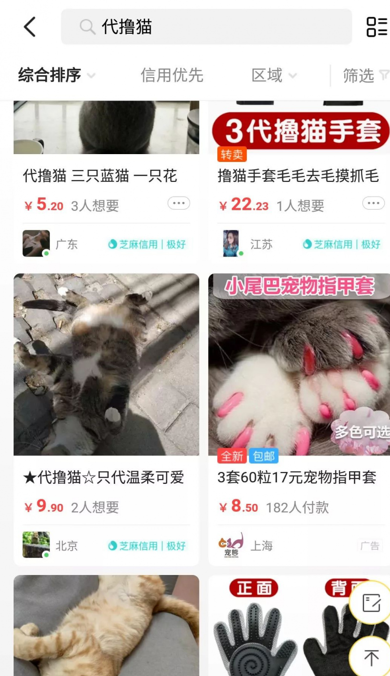 還衍生出了“代鏟貓屎”、“貓咪牆角蹭癢器”、“寵物指甲套”等等一系列產品。