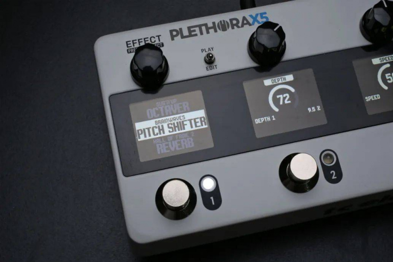 Plethora X5可以一次選擇5款Tone Print效果,再以任何您所喜歡的方式把它們連接組合起來。您可以組合出適用於各種曲風的效果鏈,可以通過背面的撥檔,或者踩三下第一個踩釘,再配合第二個釘來即時切換不同的效果鏈組合。