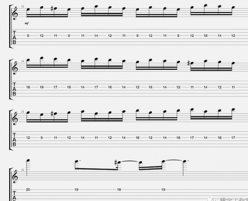 隨後的四小節中,我繼續雙吉他演奏: