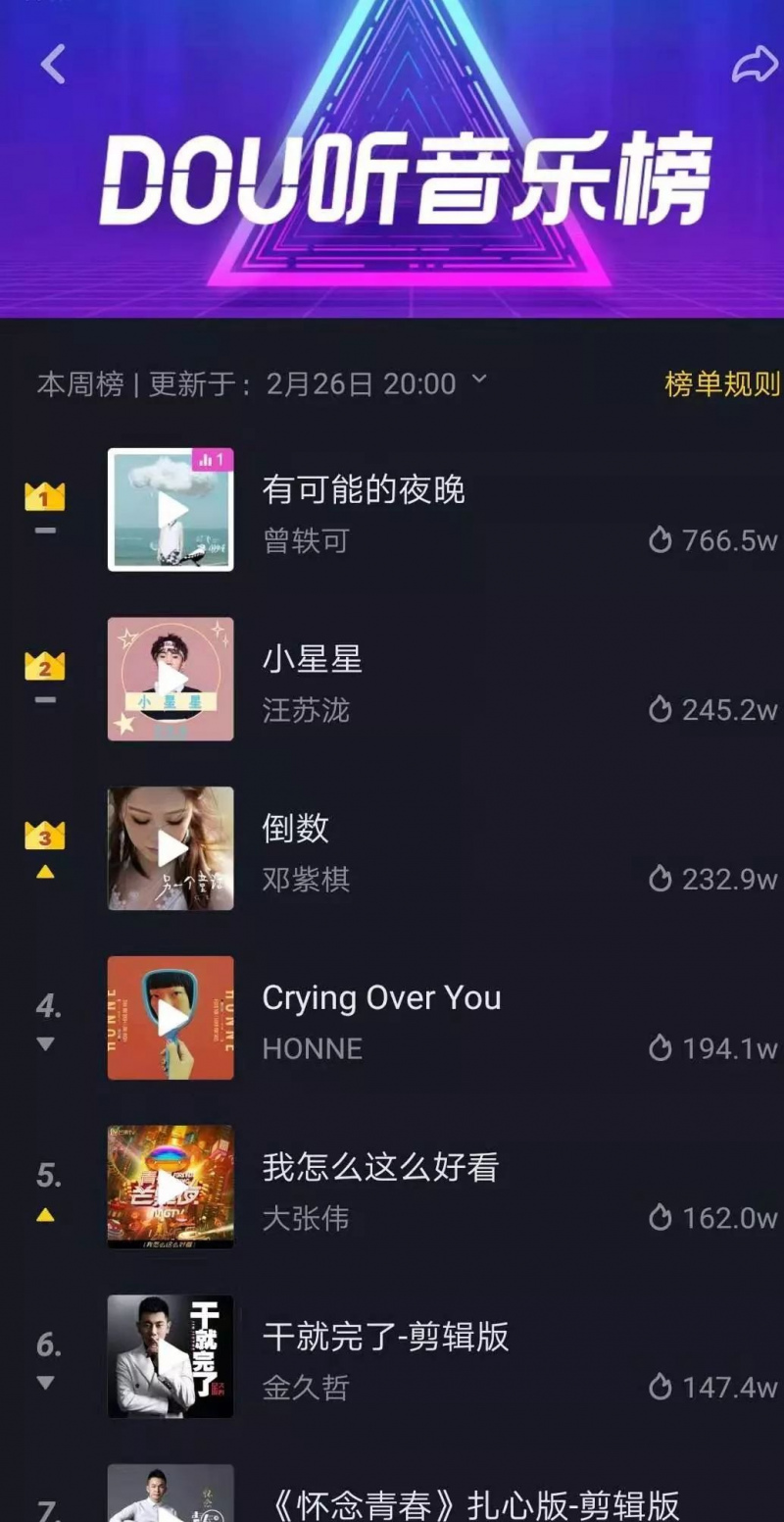 最近潮哥的朋友圈和某音可謂是被這首《有可能的夜晚》刷屏了,一點開視頻bgm就是“讓蠟燭代替所有燈,讓音樂代替話語聲。”這首歌也一度飆升各大音樂軟件熱歌榜單前十。