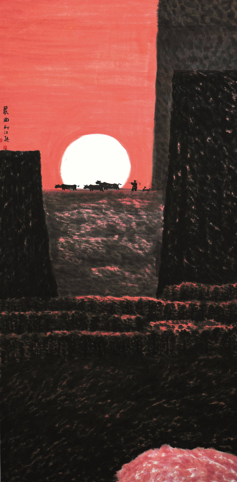 國畫《晨曲》由著名國畫大師邱漢橋創作,精美絕倫。