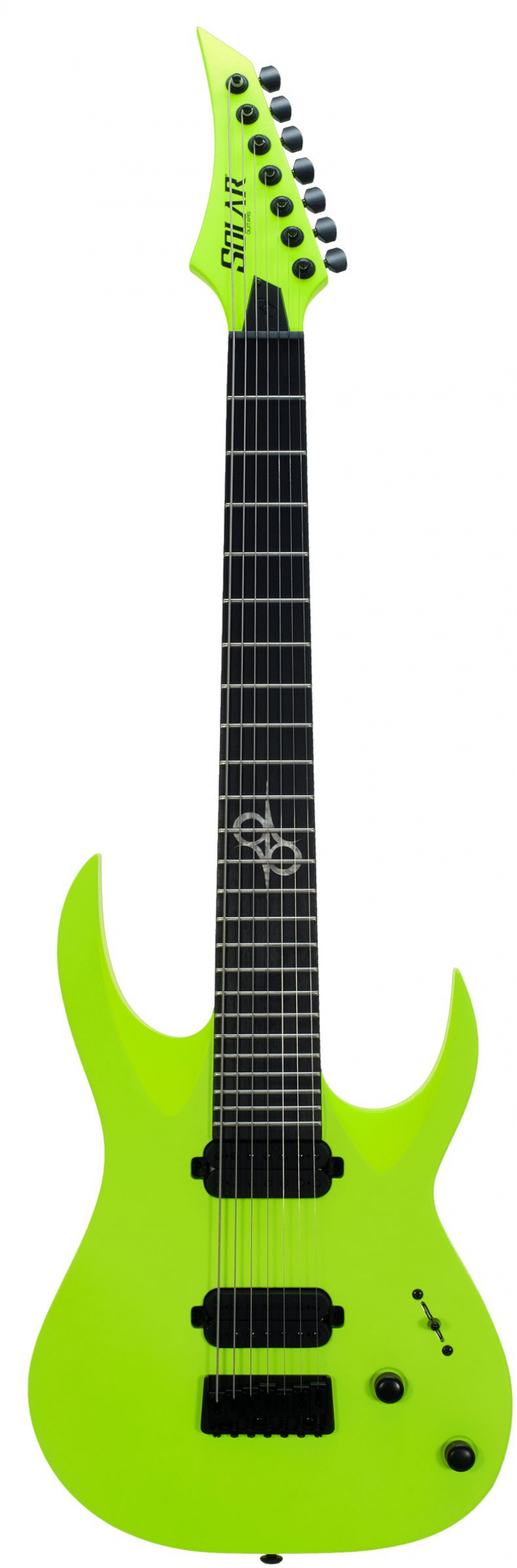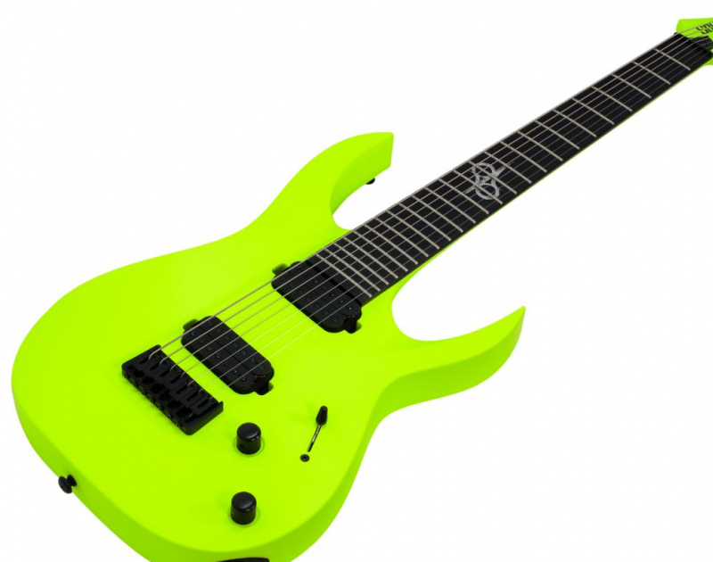 John Browne 這次上手的檸檬綠色七弦吉他是 Solar A2.7LN,這款琴擁有Solar A型琴一貫的 雙缺角設計, 桃花芯木琴體, 楓木琴頸, 烏木指板, Duncan Solar 拾音器, 有效弦長為26.5"。琴頭弦鈕均刻有Solar吉他的“S”字樣,出廠琴弦為 音色極其現代、清晰的Black Smith鍍膜琴弦。這款吉他的 霓虹檸檬綠色使得整體的風格青春氣息十足,價格便宜的同時,在音色、手感等等方面毫不妥協,足以勝任如今現代吉他手在演出、錄音、練習等等各種演奏場景。