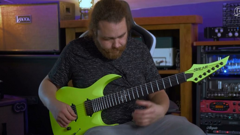 有右手神之稱,如今炙手可熱的 Djent 前衛金屬樂隊 Monuments 吉他手 John Browne近日購買了這款檸檬綠配色的 Solar A2.7LN 七弦吉他當作犒勞自己粉絲的聖誕禮物,並將這款琴與自己擁有的高端定制琴進行了清音、節奏、Solo等全方位的音色對比。