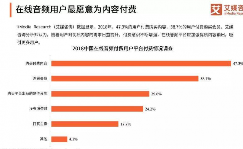 2019上半年,中國網民有52.8%的人使用過在線音頻APP。截至2019年10月,喜馬拉雅用戶數突破6億,主播超過700萬,活躍用戶的人均日收聽時間超170分鐘。 多數聽眾在收聽時有過付費或打賞,語音內容付費仍有較大發展潛力。