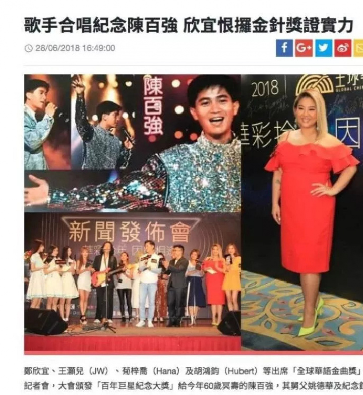 “2018全球華語金曲獎頒獎典”將“百年巨星紀念大獎”頒給了已故歌手陳百強。(節選於《文匯報》)