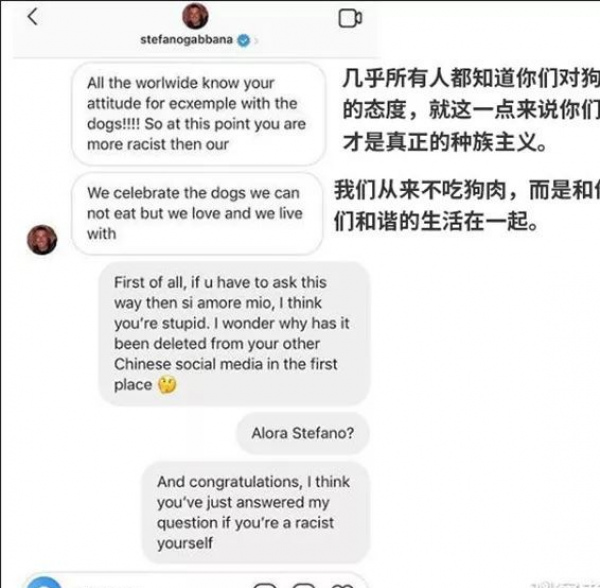 然而Dolce&Gabbana(杜嘉班納)的設計師意大利人Stefano Gabbana卻在視頻被刪後在社交平台上的公開辱華,最終徹底激怒了我們!
