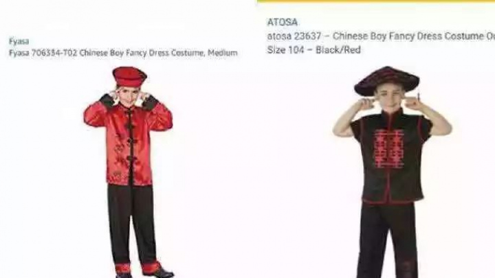 年初,涉事的兩個服裝於亞馬遜及eBay的英國網站刊登,海報中白人男孩身穿傳統中國服飾,用手指向自己的眼角,以CHINK(歧視詞匯:眯眯眼中國佬)形象暗諷刺中國人。大批華裔人士看畢後大感憤怒,把有關廣告圖片拍下,再放上亞馬遜的社交平台Facebook及Twitter的專頁,引起國內網友眾怒,亞馬遜因輿論緊急下架了兩款相關的產品。