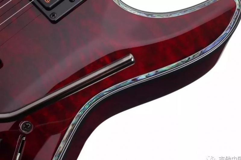Schecter Blackjack ATX 采用全桃花芯木琴身,琴體連接完美;全包琴,其中琴頭和琴身還是用的三層手工包邊,做工極細。