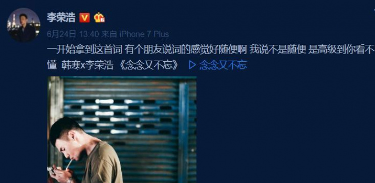對於李榮浩在微博回應到: